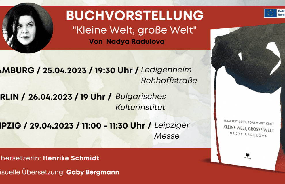 Die Übersetzung des Gedichtbands „Kleine Welt, große Welt“ von Nadya Radulova erfolgt mit finanzieller Unterstützung des bulgarischen Nationalen Kulturfonds.